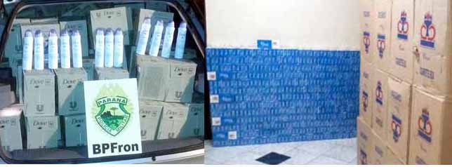 A outra ocorrência foi na BR 280 em Flor da Serra do Sul, onde o BPFron – Batalhão de Policia de Fronteira do PR, fazia patrulhamento e abordou o veiculo GM Corsa Hatch com placas de Sorocaba SP, que transportava a quantia de 180 caixas de desodorante contrabandeadas da Argentina, carga avaliada em mais de R$ 37 mil, mais o valor do veiculo avaliado em R$ 13 mil totaliza R$ 50 mil