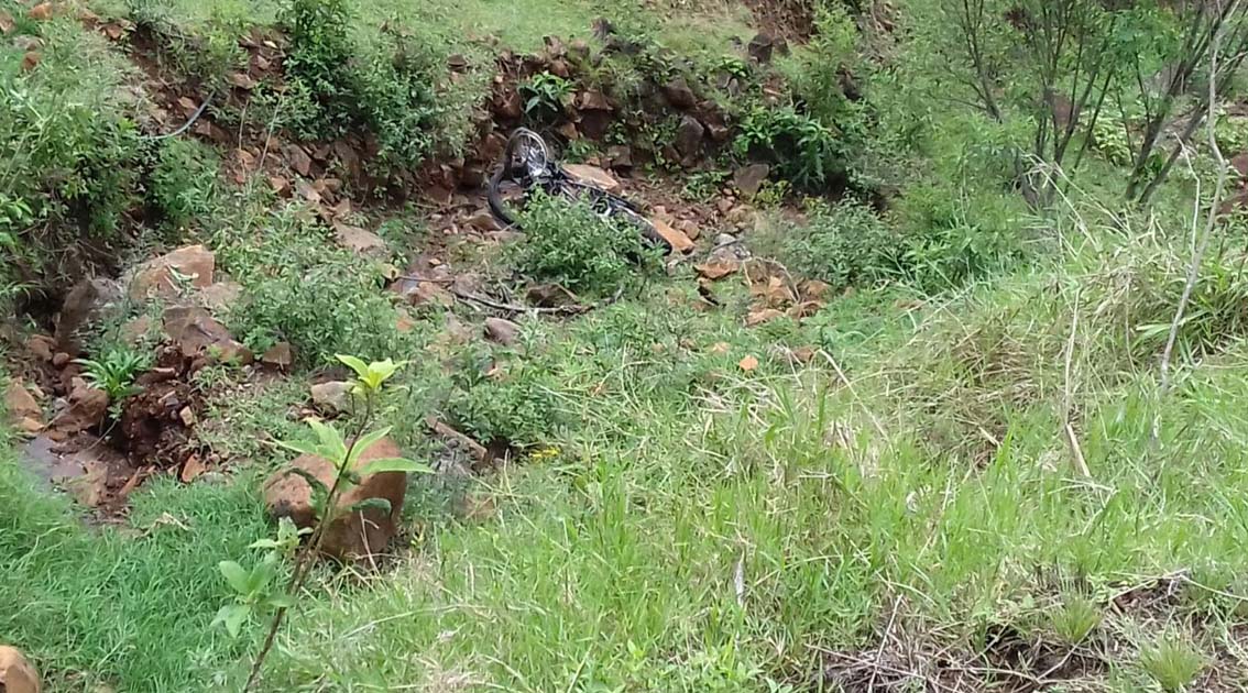 no local. Depois do choque a moto sai da pista e caiu com o condutor em um