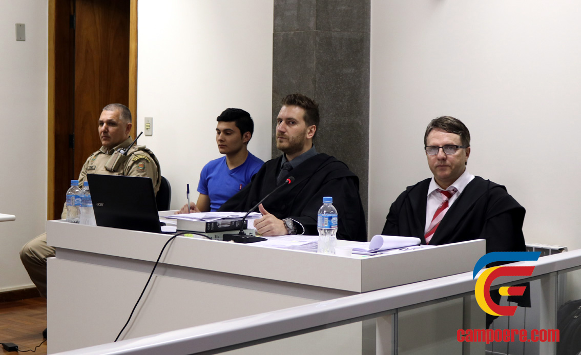 réu a 11 anos e 8 meses de prisão em regime fechado, por ter assassinado a facadas, no dia 26 de junho de 2016, na avenida Alfredo Scopel, centro da cidade de Saltinho, Zaqueu Christmann de 21 anos, e de 6 meses em regime semi