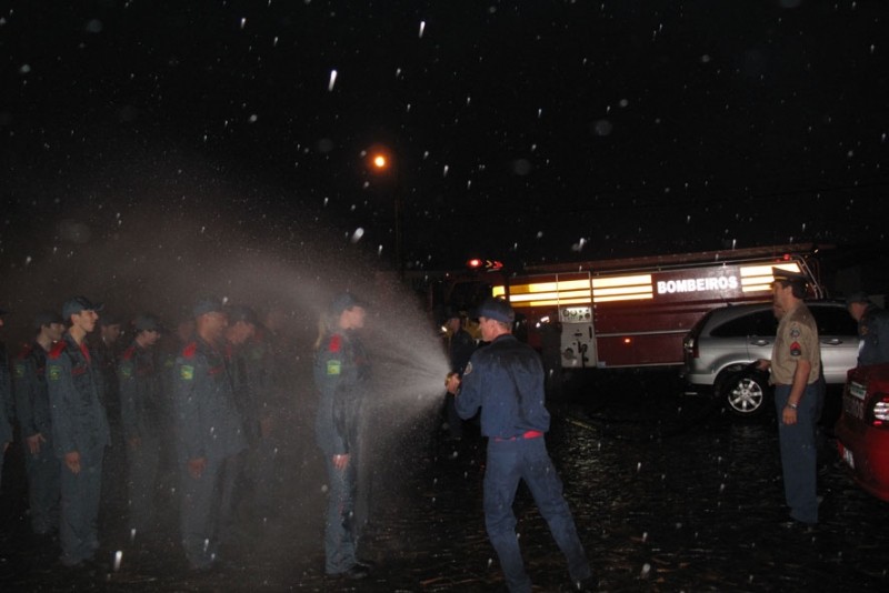 Logo após a solenidade os bombeiros formados receberam o batismo. Sirenes e alertas das viaturas foram ligadas e um banho de água com a manga de combate a incêndio do caminhão completou a solenidade. Logo após teve o jantar de confraternização no clube Santa Catarina