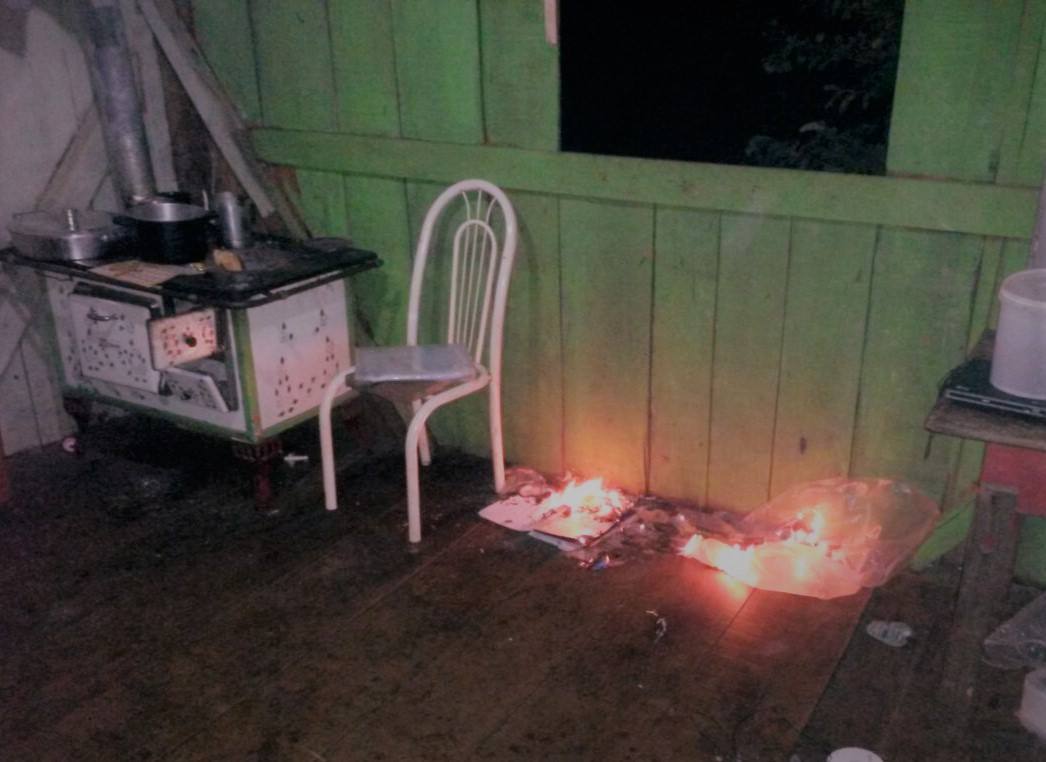 Na residência, estava esposa com um filho de 10 meses, onde ele também, com chutes e socos, quebrou vários objetos e botou fogo que foi controlado pelos policiais.