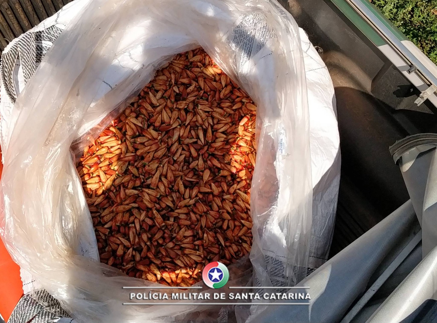 transporte de 210 quilos de pinhão e 29 pinhas.
