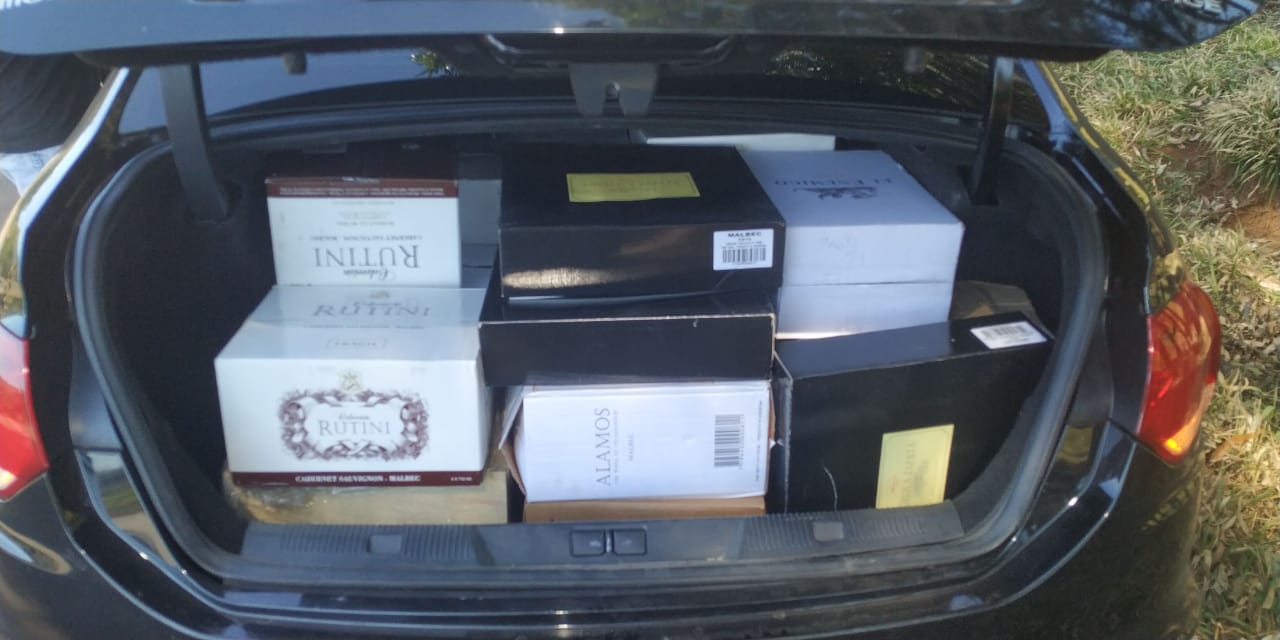 do veiculo disse que pegou as 35 caixas de vinho na Argentina e o dinheiro