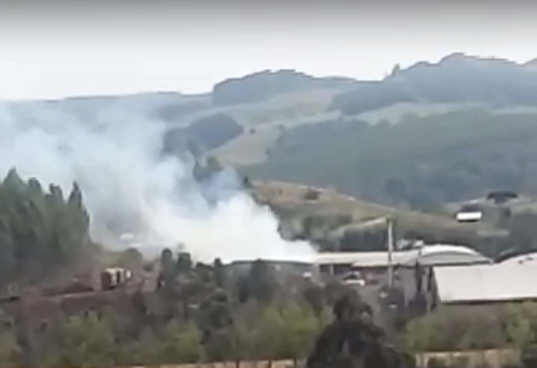 O incêndio se concentrou dentro de uma estufa de material,