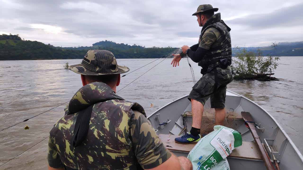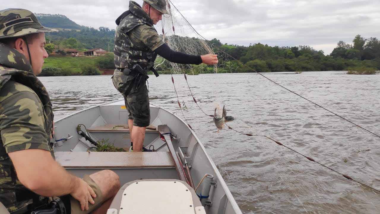 O material apreendido foi destruído e os peixes que estavam presos as redes foram soltos no mesmo local.