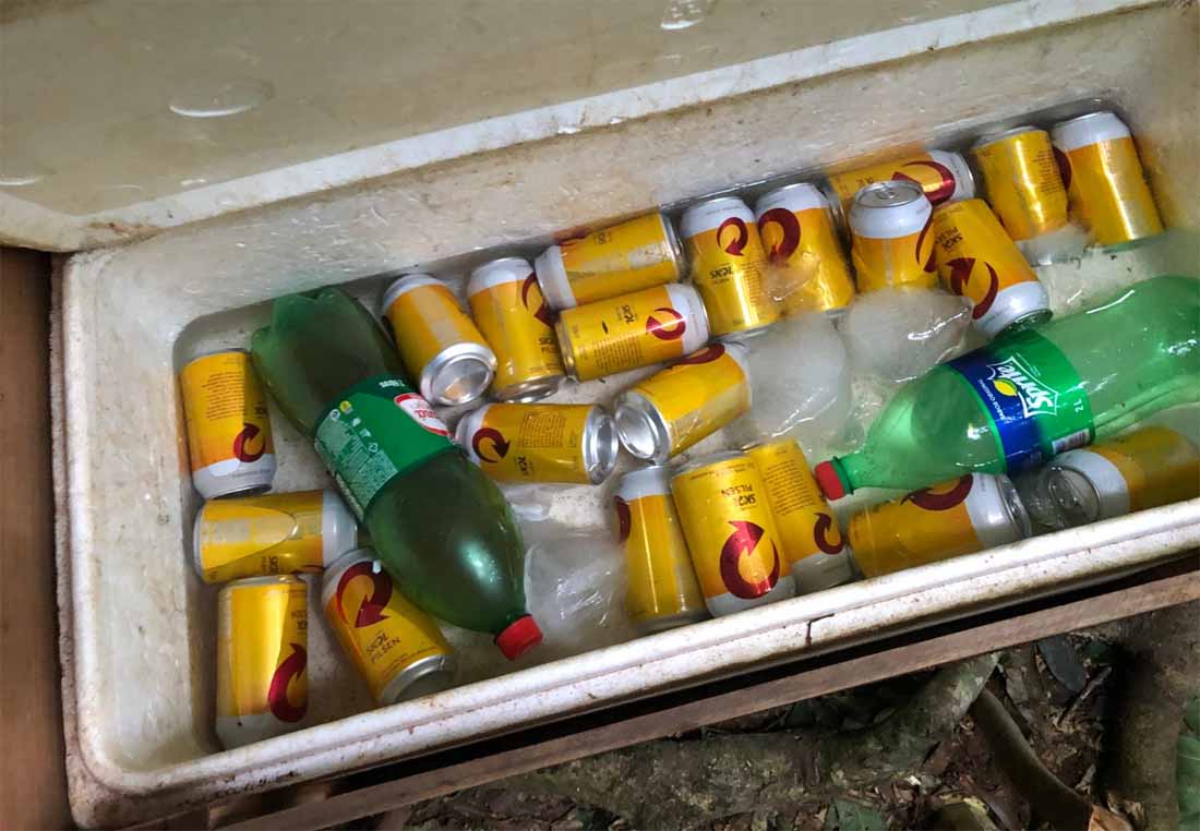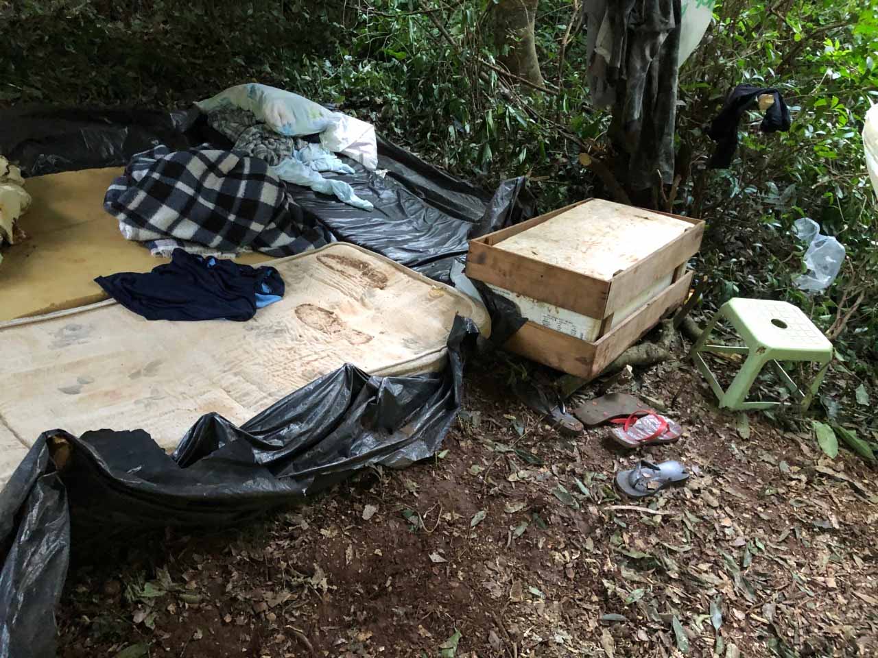 Durante as buscas foi encontrado próximo a margem, um acampamento