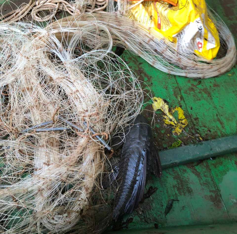 Durante a fiscalização, os policiais encontraram uma tarrafa,