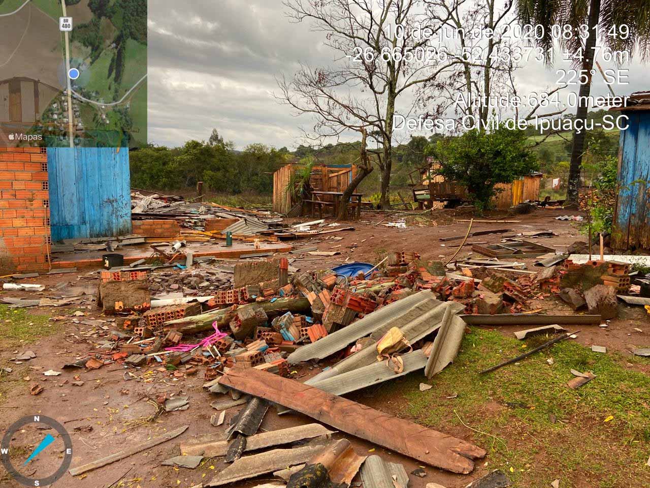 vários destelhamentos na aldeia Pinhalzinho, Aldeia Olaria, Linha Salete, Linha