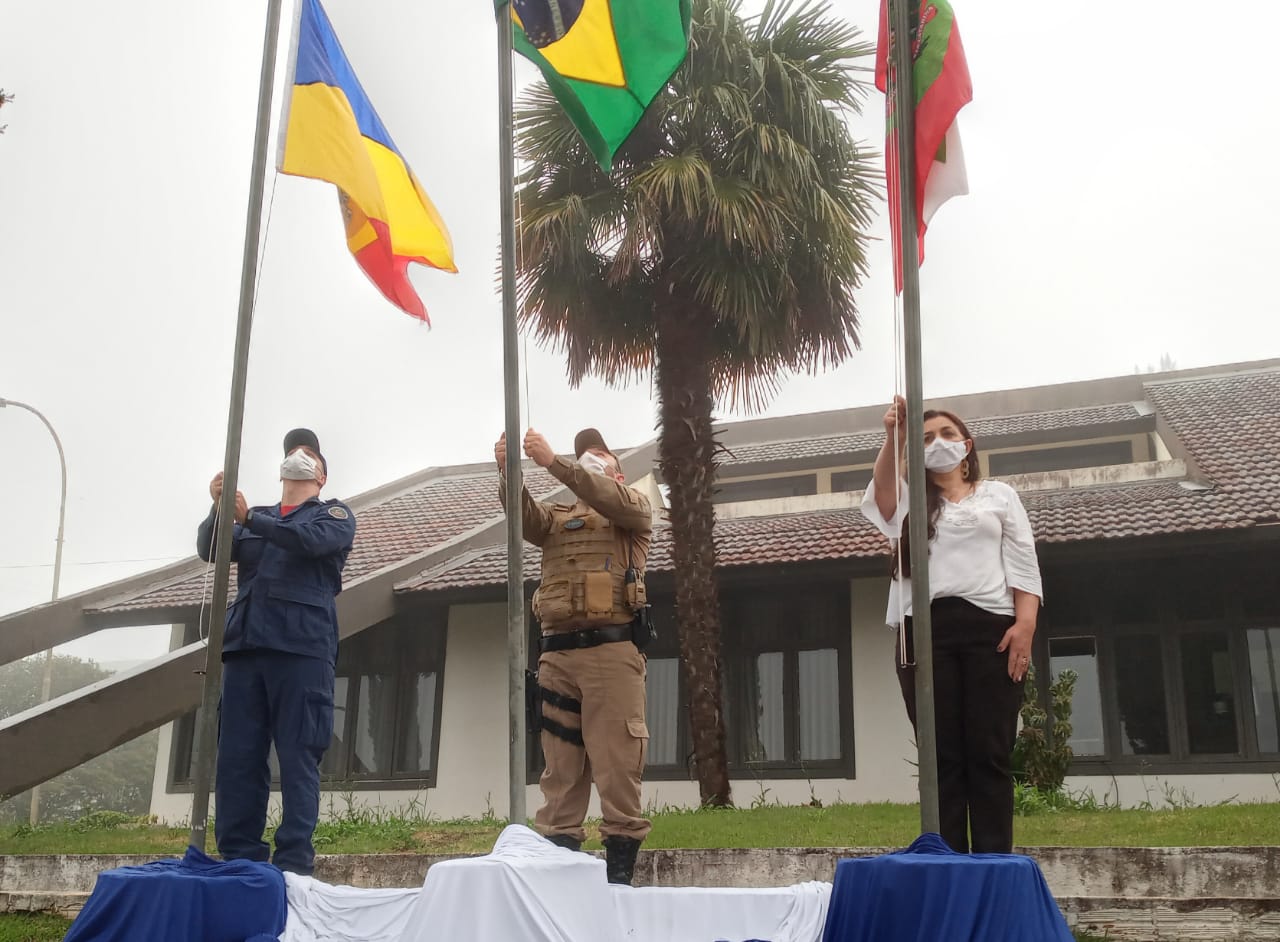 Na manhã deste 7 de setembro, a secretária de educação, representantes do corpo de bombeiros e da policia militar, fizeram o hasteamento das bandeiras na sede do poder executivo campoere_1nse.