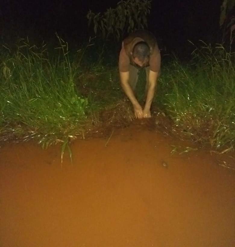 o acidente e um bombeiro de Campo Erê, com uma enxada abriu o mato, para que a agua escoasse evitando, pelo