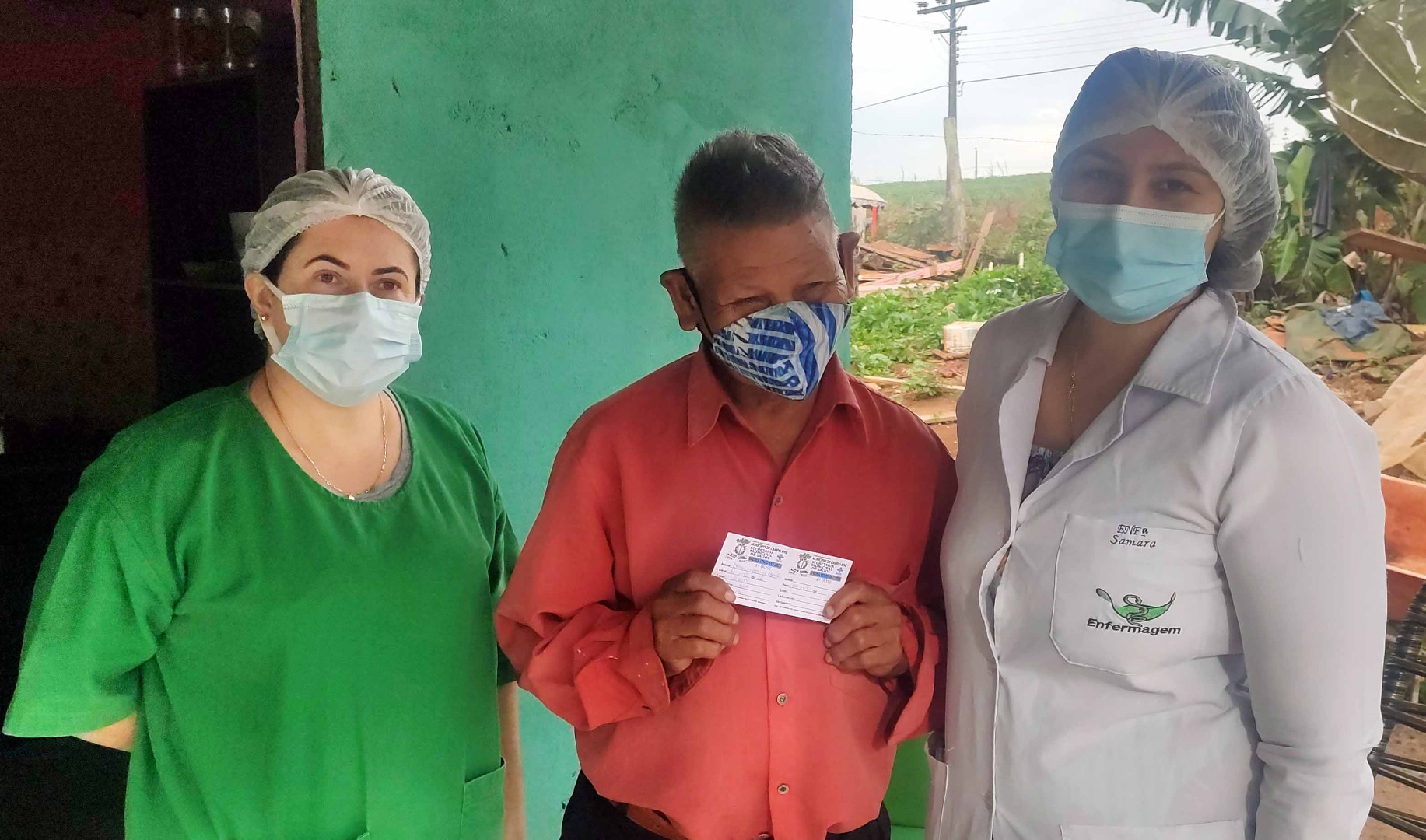 As enfermeiras responsáveis pela imunização foram até a residência