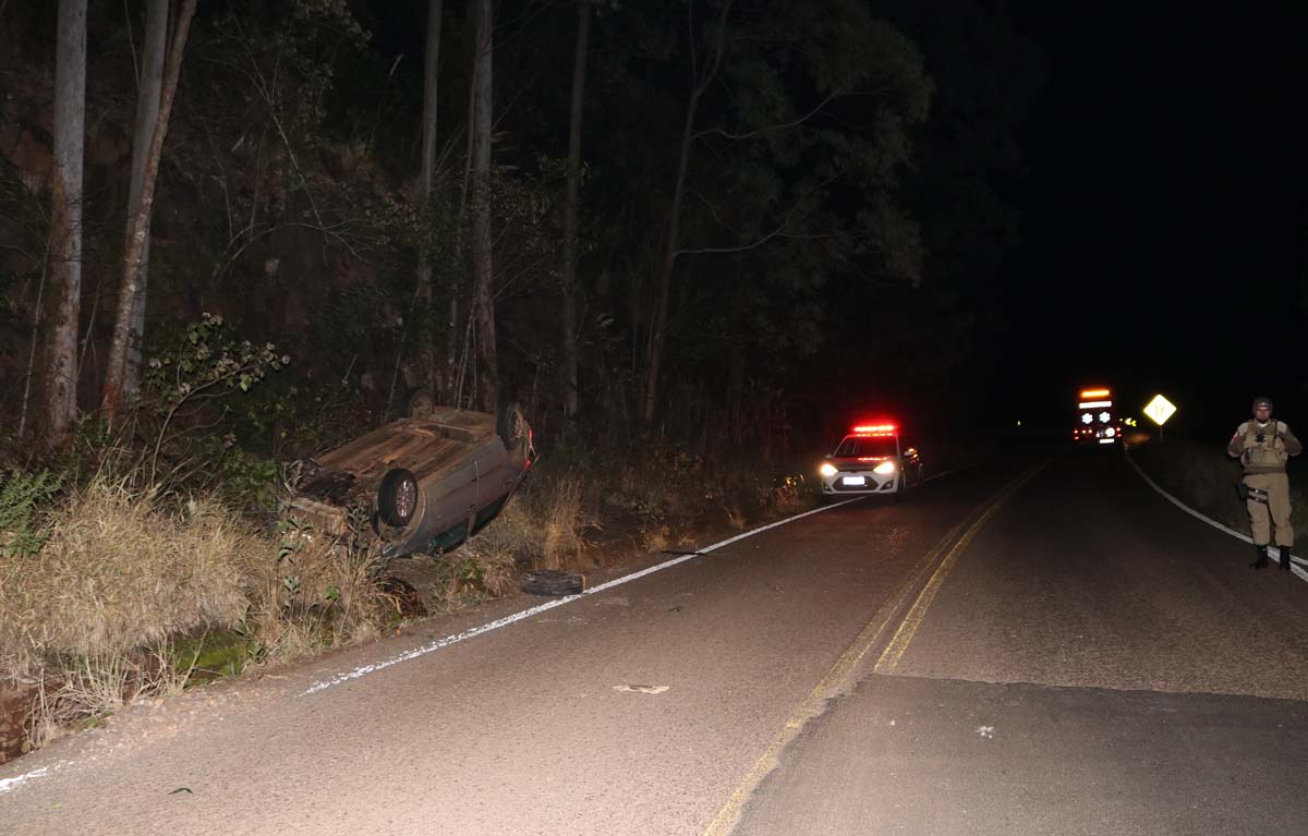 que perdeu o controle de direção de capotou ao lado da rodovia.