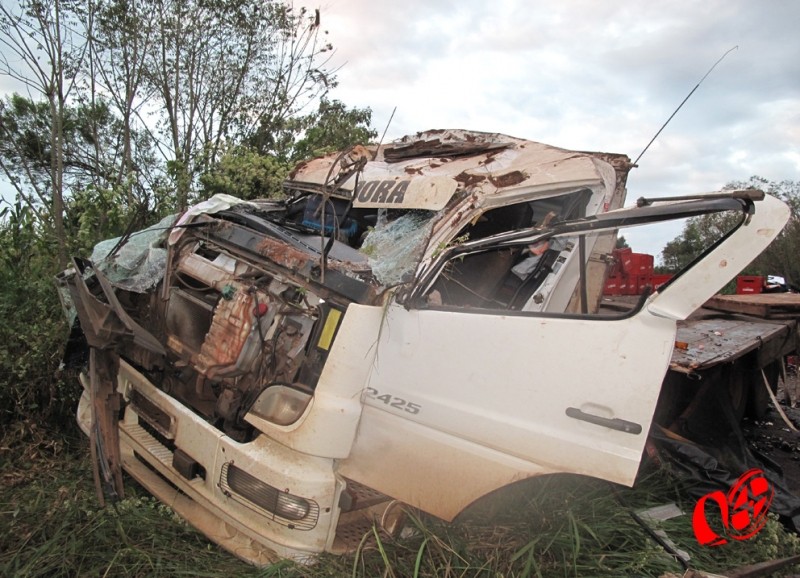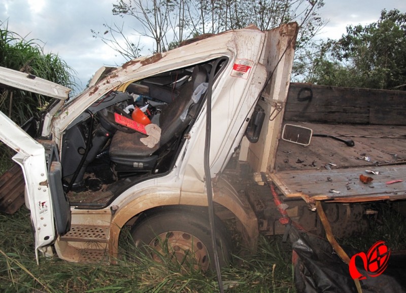 O caminhão seguia sentido Marmeleiro/Campo Erê, não conseguiu fazer a curva chocando-se contra o barranco e tombando em seguida.