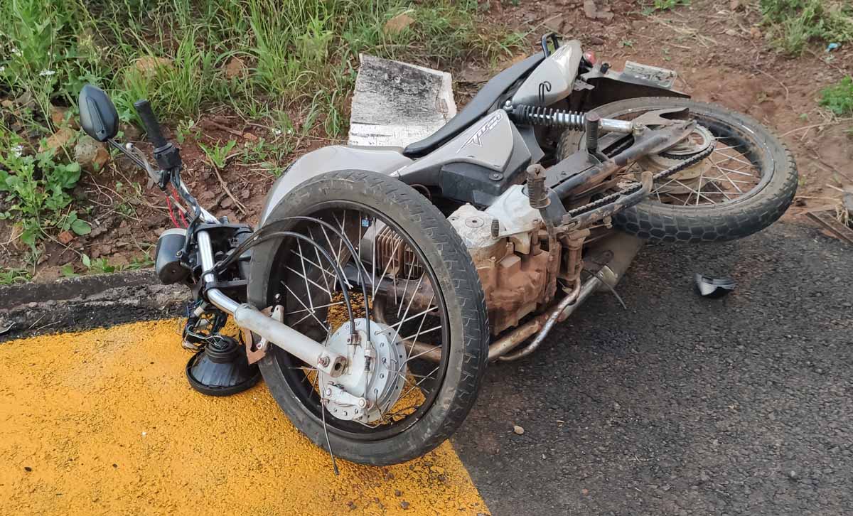 O condutor da moto de 18 anos, ficou ferido e foi levado para atendimento hospitalar