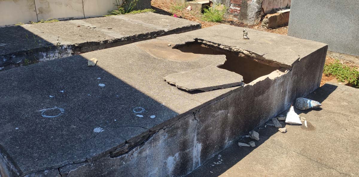 denuncias de depredação de sepulturas no cemitério municipal de Campo Erê, a