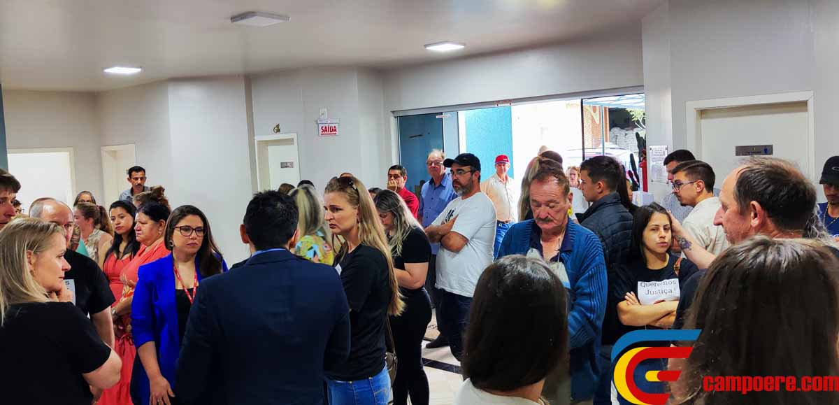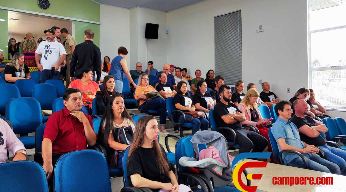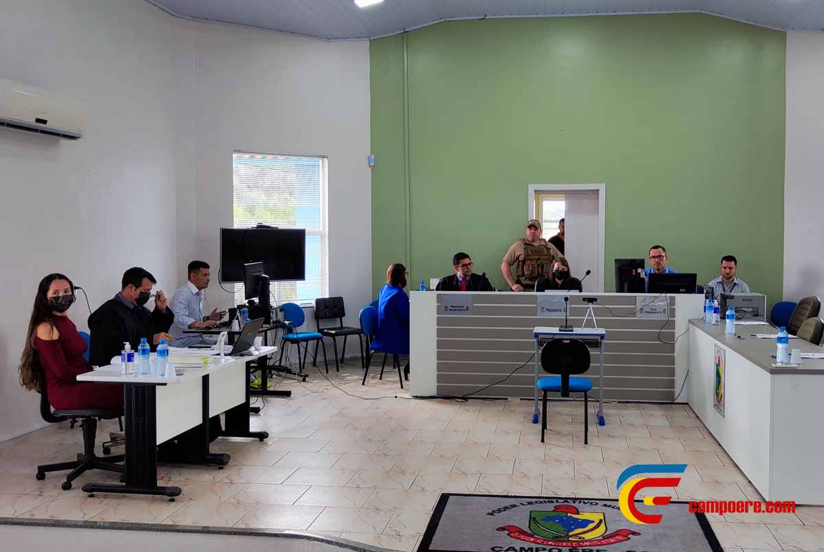 na sede da câmara de vereadores de Campo Erê, e tem de jurados quatro mulheres