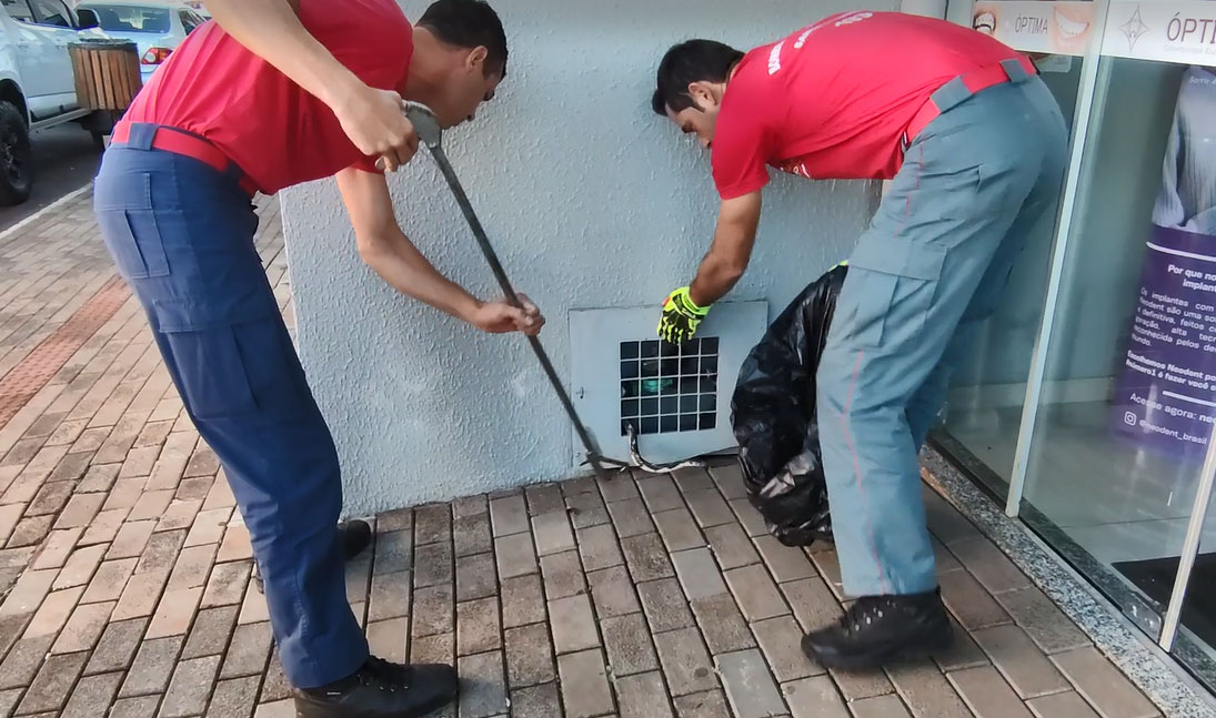 havia se refugiado em uma caixa de hidrômetro, em frente a um consultório