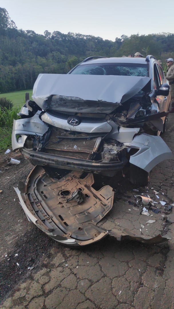sentido contrario seguia o veiculo Hyundai IX35 com placas de Bom Jesus do