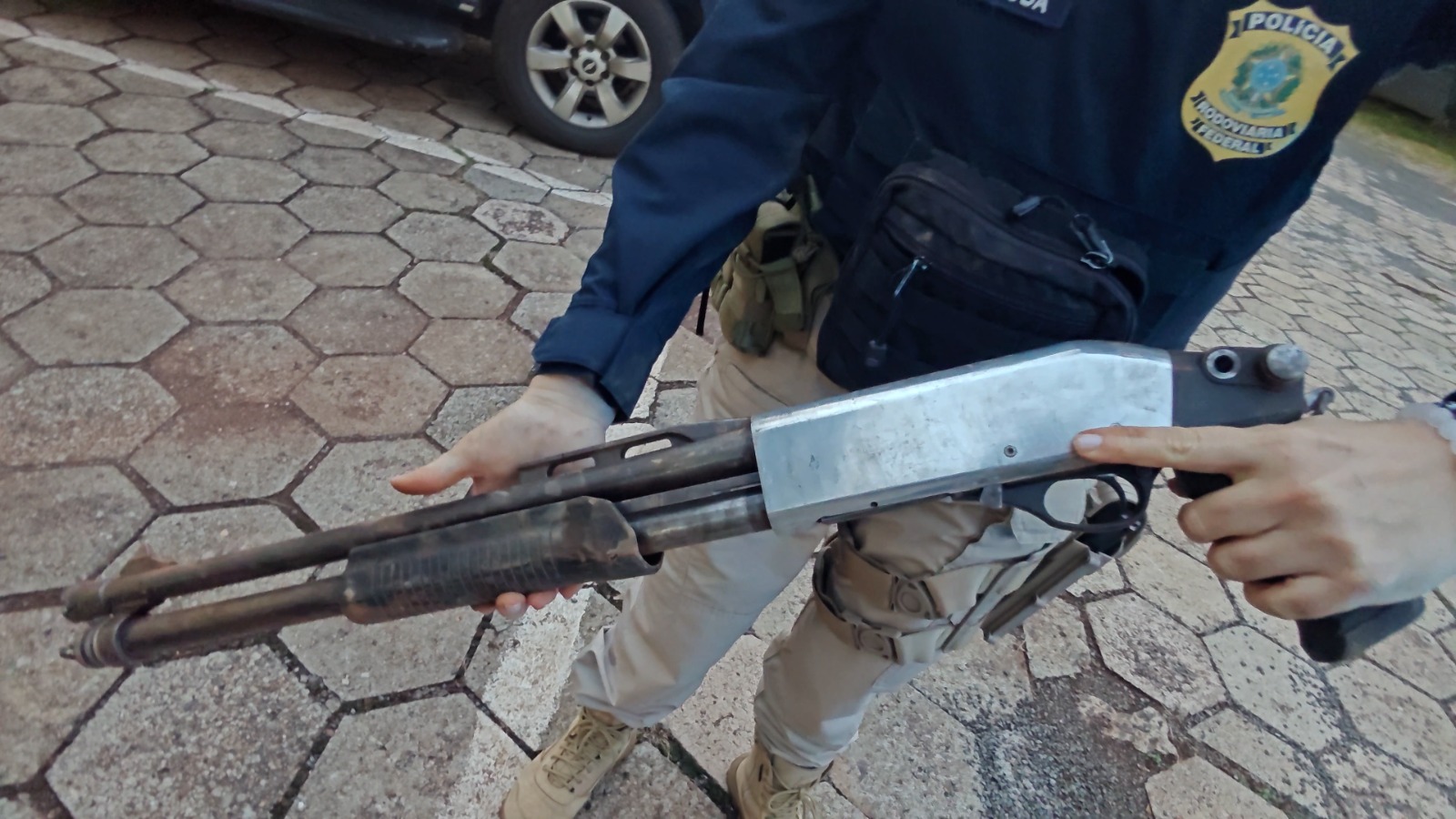 Após abrir os compartimentos foi localizado e apreendido 55,9 quilos de maconha e uma espingarda calibre 12 sem numero de serie, esta escondida dentro da porta do passageiro.