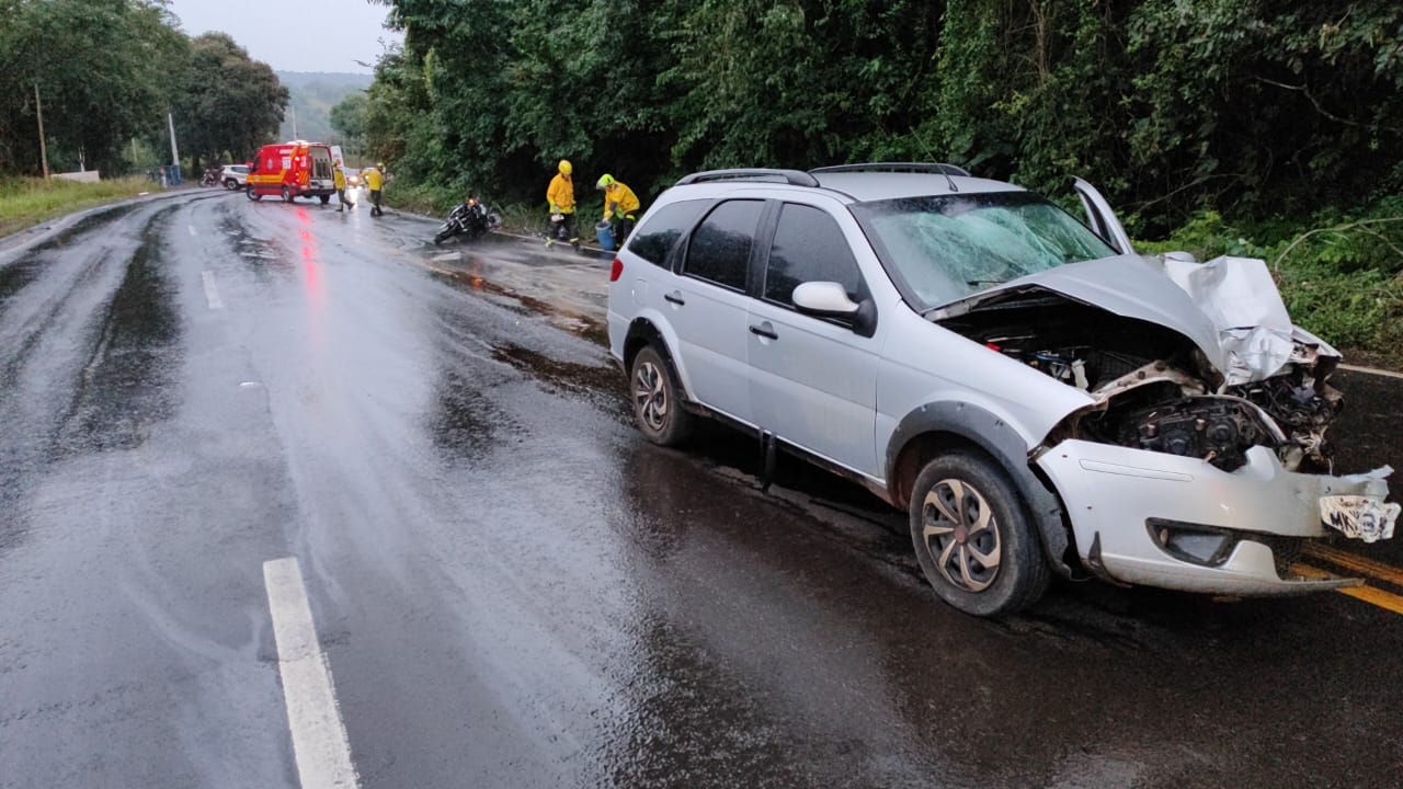 Um grave acidente foi atendido no inicio da manhã desta terça feira 08, na rodovia SC 157, no trecho que corta o município de Cardinheira Alta entre Coronel Freitas e Chapecó, envolvendo um veiculo Fiat Palio Weekend conduzido por uma mulher de 24 anos e uma moto BMW conduzida por um homem de 51.