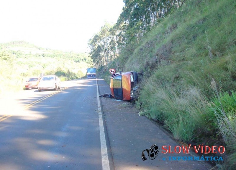 O acidente aconteceu por volta das 9 horas da manhã de hoje na rodovia SC 469 km 30 divisa dos municípios de Saltinho com Serra Alta e envolveu o veiculo Ford Fiesta de placas CHU 7197 de Maravilha SC conduzido por Ivonir Paulo Simon de 24 anos, residente na linha Aparecida interior de saltinho.<br><br>Ivonir conduzia o veiculo sentido Saltinho-Serra Alta e ao fazer a curva o veiculo rodou na pista, chocou-se no barranco e capotou. Ele não teve ferimentos e os danos no veiculo foram de média monta. O veiculo será removido ao pátio da PRE de São Lourenço do Oeste por estar com a documentos em situação irregular.<br><br><a href="http://www.slowvideo.com.br/fotos_noticia.php?id=2997"><b>Mais fotos</b></a><br>