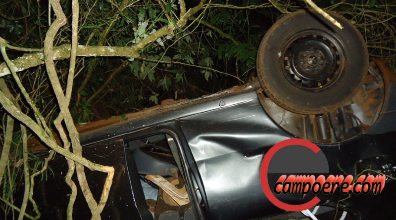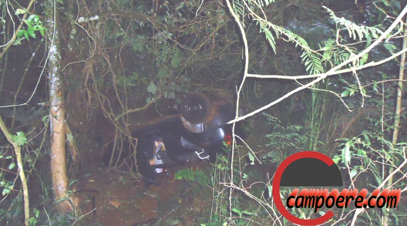 quando na curva o condutor perdeu o controle saiu da pista e capotou sobre um
