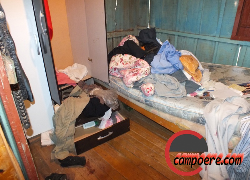 O assassino quebrou a “tranca” da porta para conseguir entrar na casa e praticar o crime, que foi cometido possivelmente a facadas e uma delas perfurou o pescoço, pelo qual a vitima perdeu muito sangue vindo a óbito no local.