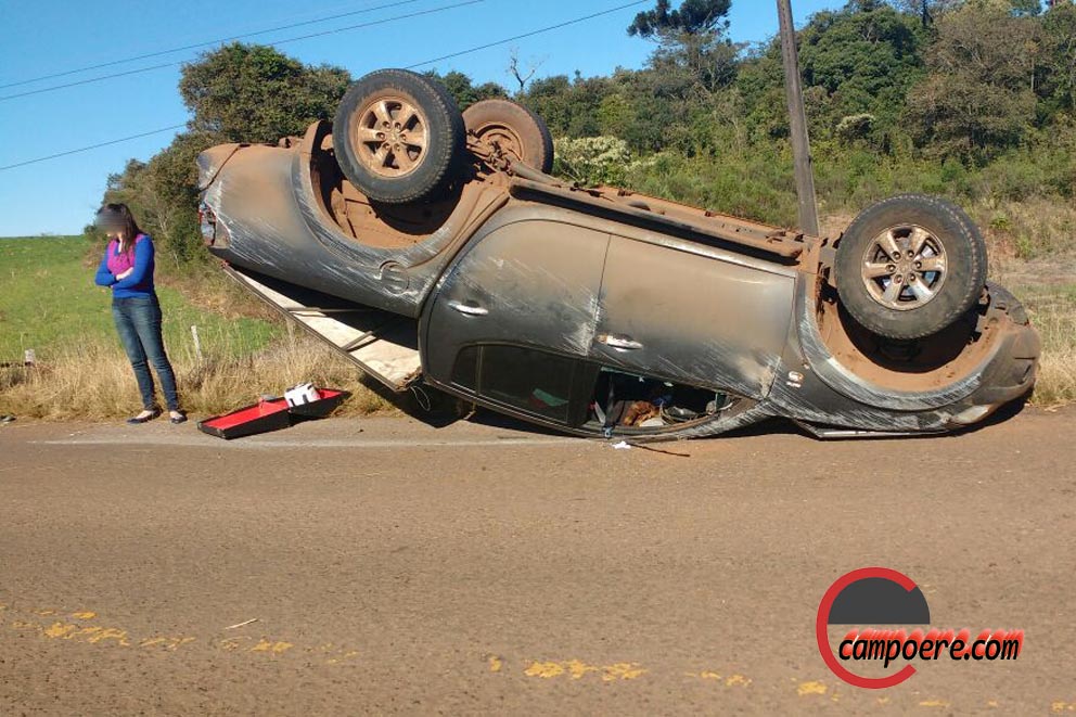 O primeiro foi as 12:15 horas na SC 160, trecho entre Campo Erê/Saltinho onde o Renault Clio com placas de Francisco Beltrão PR, conduzido por uma mulher de 25 anos, saiu da pista, bateu no barranco e capotou.