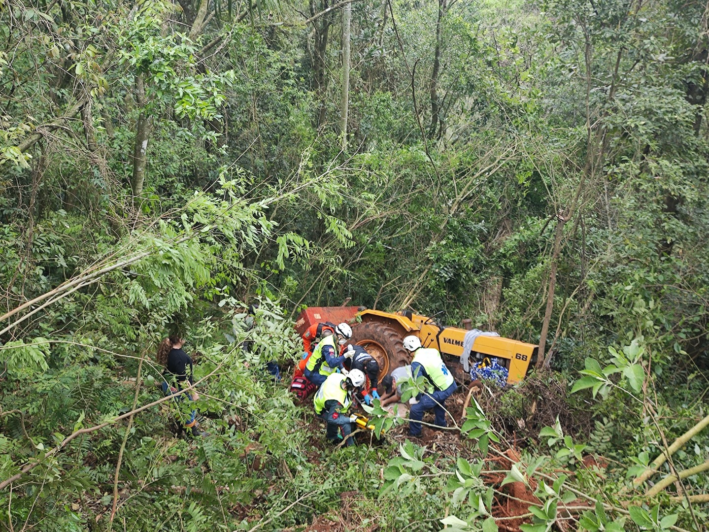 Resgate de vitima de acidente com trator mobiliza várias equipes em Galvão.