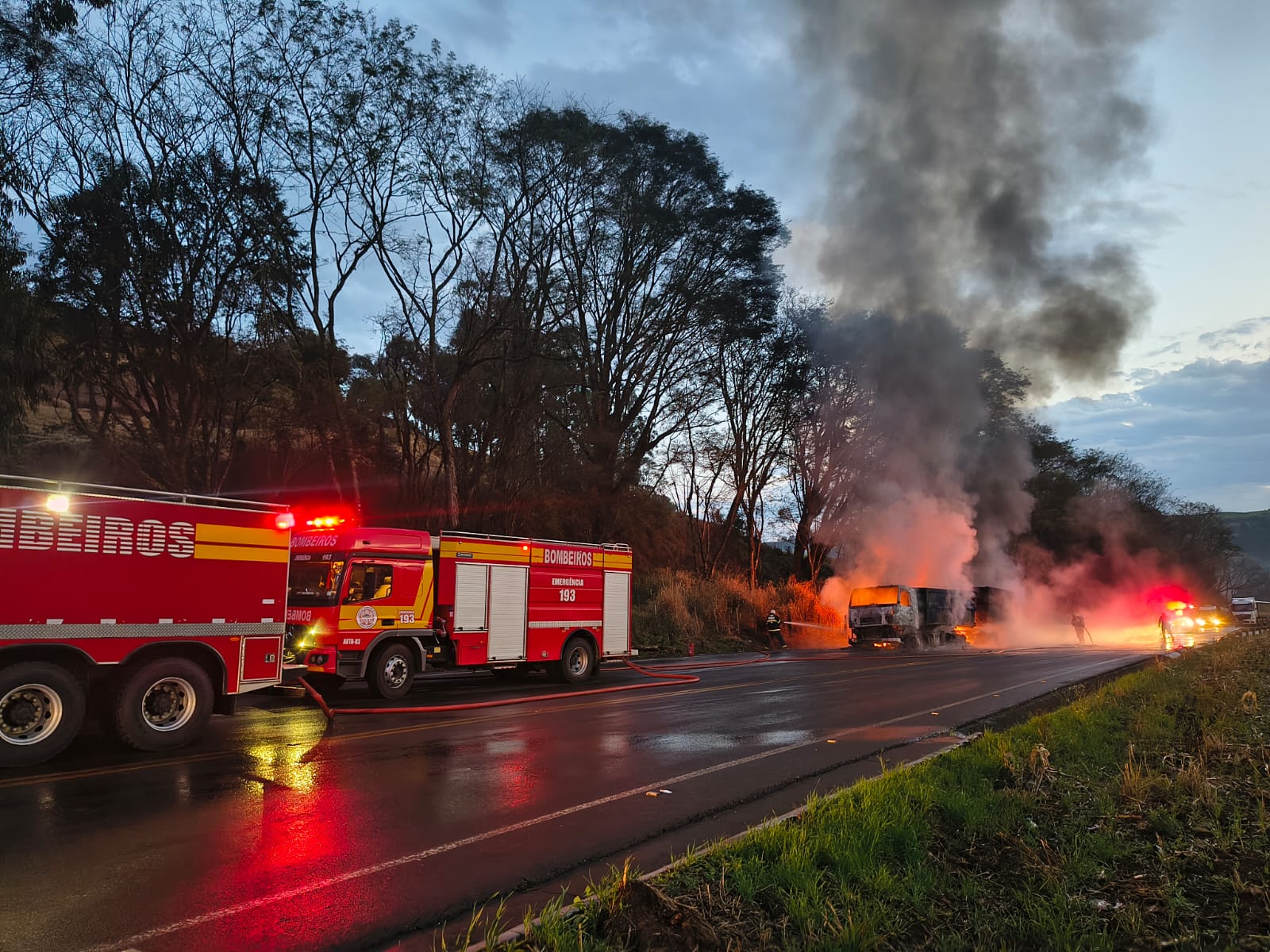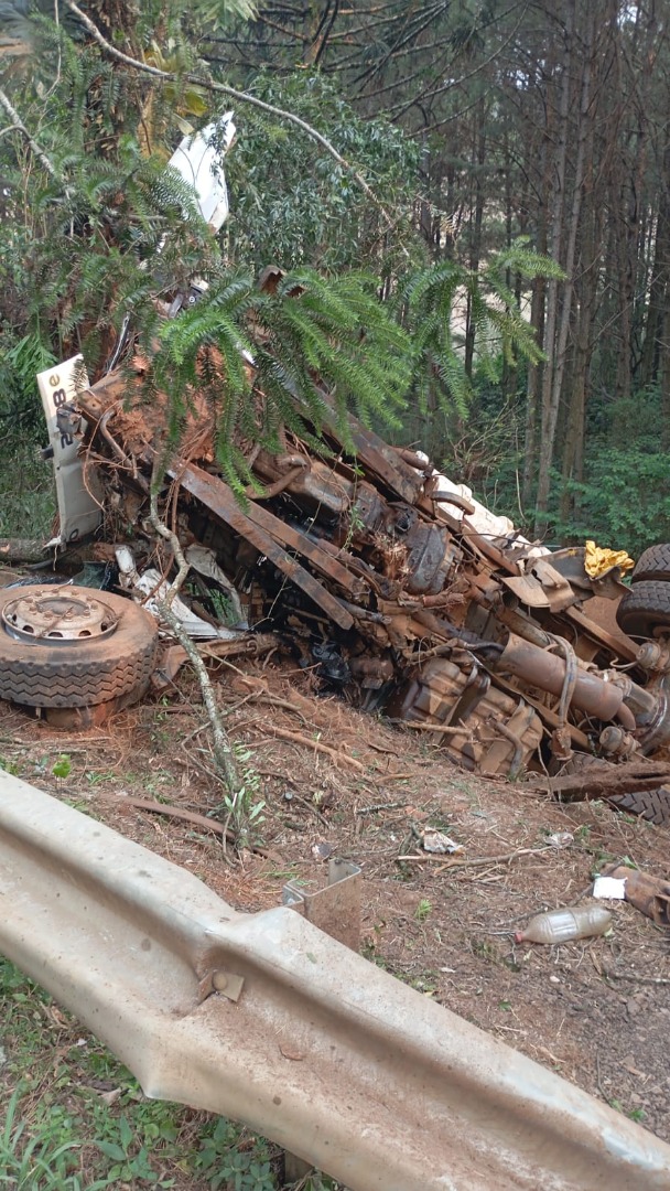 Caminhão fica completamente destruído por incêndio na SC-157, em Novo Horizonte
