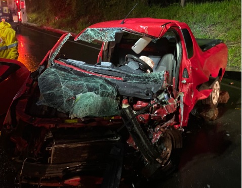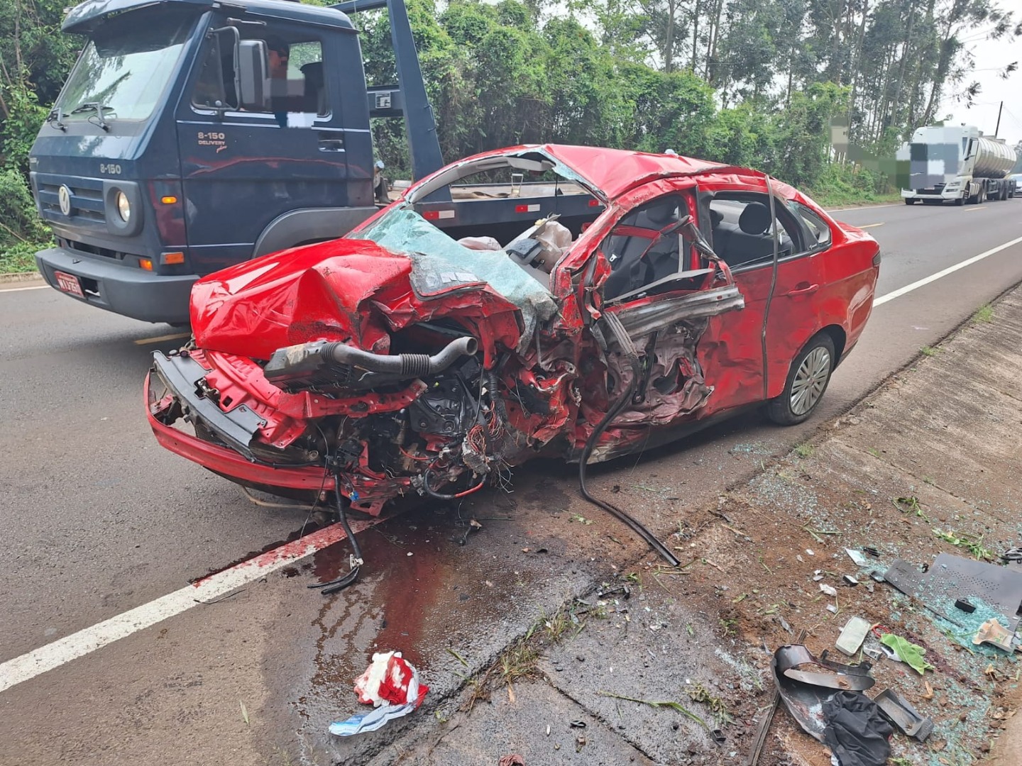 Após batida frontal com caminhão, camionete fica destruída na SC-157