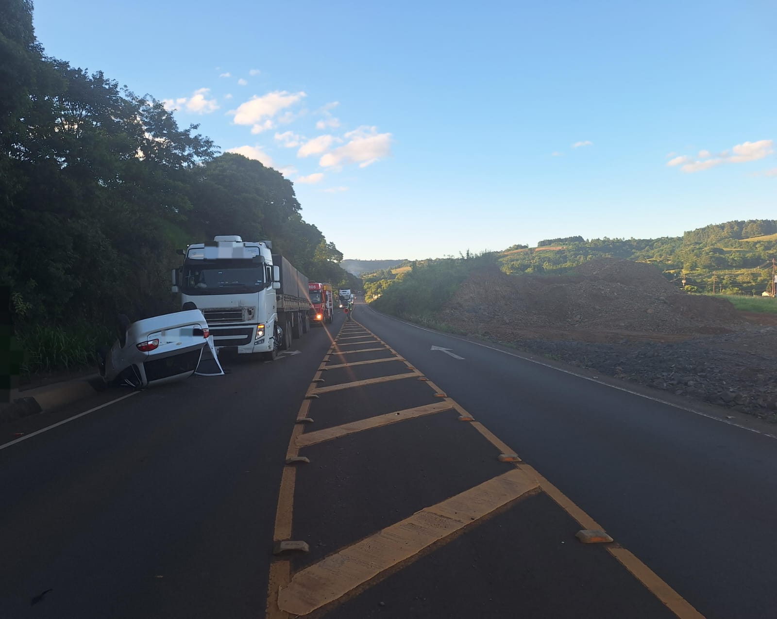 Buraco na pista é a provável causa de acidente na SC 157 em Novo Horizonte
